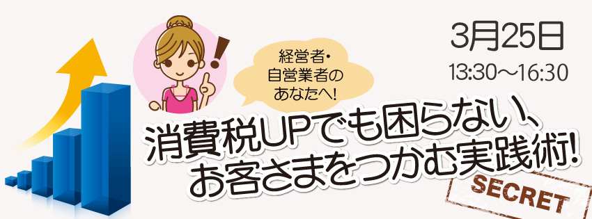 消費税UPでも困らない、お客さまをつかむ実践術 ご希望の皆様全員に 【1ヶ月間の無料コンサルティング権(メールまたはSkype)】 を差し上げます。 |